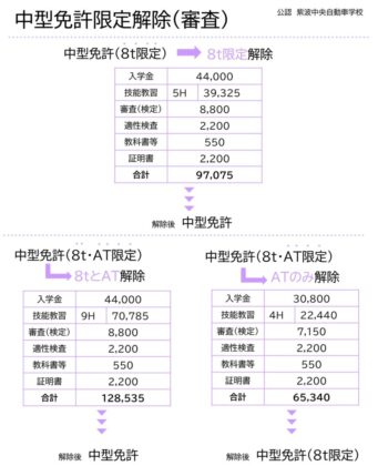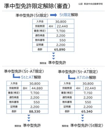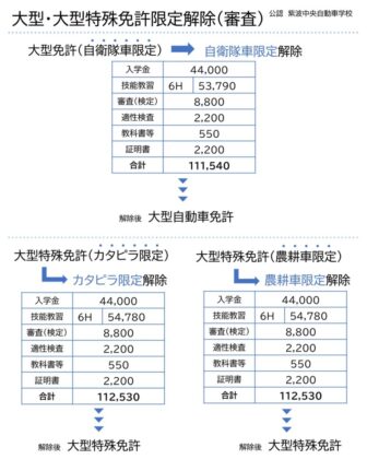 教習車種 | 普通車(MT) | 準中型車 | 大型車 | 普通二輪 | 中型車 | 大型特殊 | 大型特殊 | |
